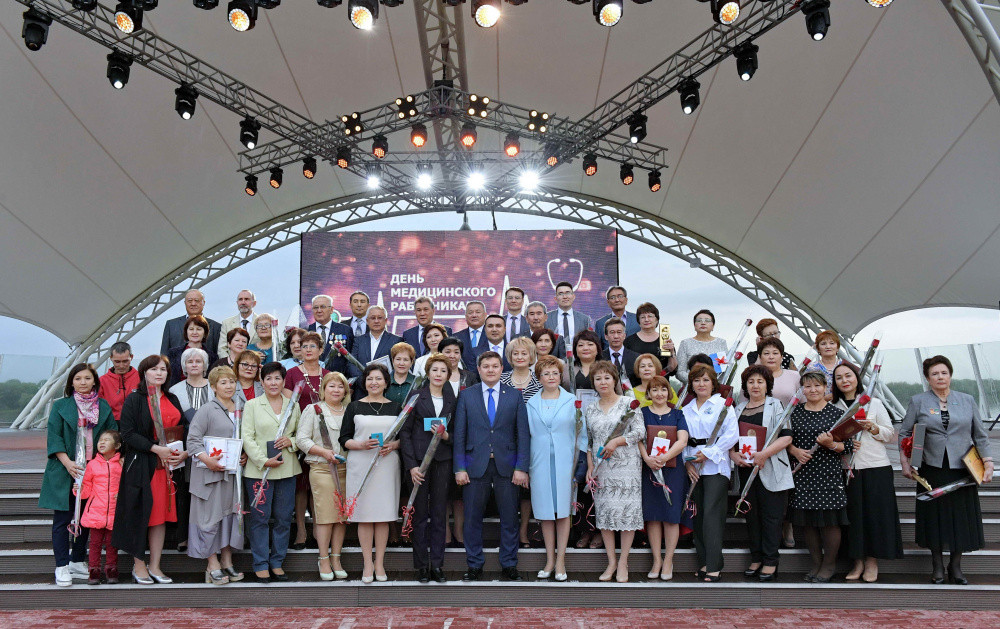 В честь праздника наградили выдающихся медработников региона медалями "Еңбек ардагері", знаками отличия "Қазақстан Республикасының денсаулық сақтау ісіне қосқан үлесі үшін" и "Қазақстан Республикасының денсаулық сақтау ісінің үздігі", а также почётными грамотами акима области.