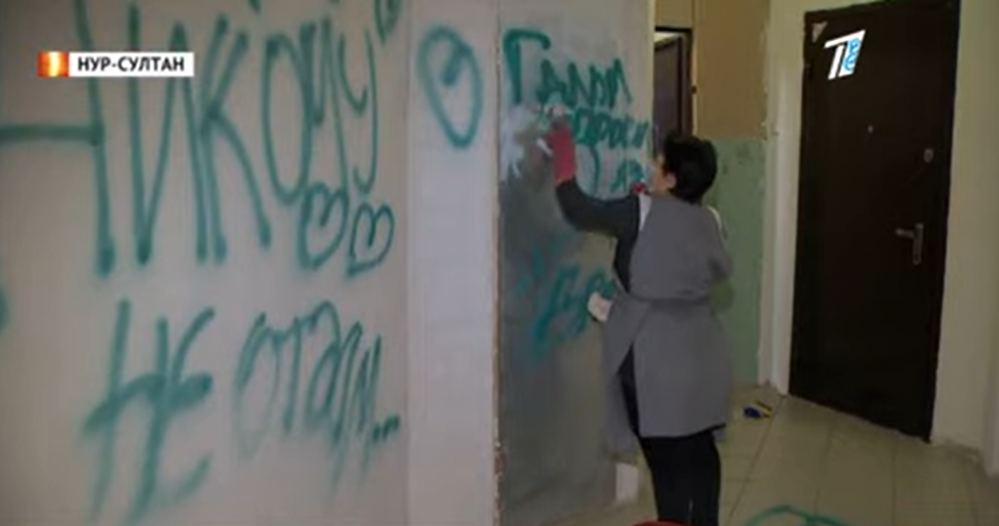 Полиция Нур-Султана разыскивает неизвестного, который расписал краской подъезд многоэтажки признаниями в любви, передает