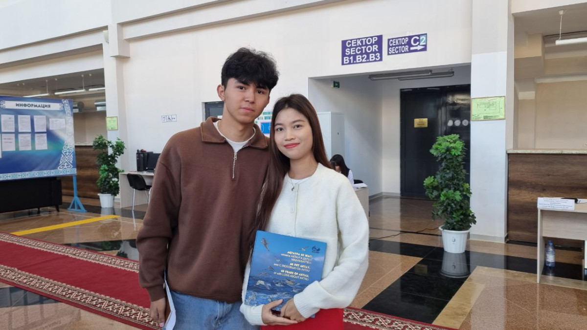 На участок голосования, расположенном в Halyk Arena, пришла молодая супружеская пара, которая вызвала неподдельный интерес у присутствующих. Девушка из Таиланда недавно вышла замуж за актауского парня. И сегодня они пришли проголосовать. Суфафон Хонгчетхем, так зовут тайландскую келин, решила сегодня поддержать мужа. Она сама пока проголосовать не может, так как не успела ещё получить гражданство Казахстана. Суфафон переехала в Актау в апреле 2024 года и уже успела познакомиться с казахскими национальными традициями и обычаями.