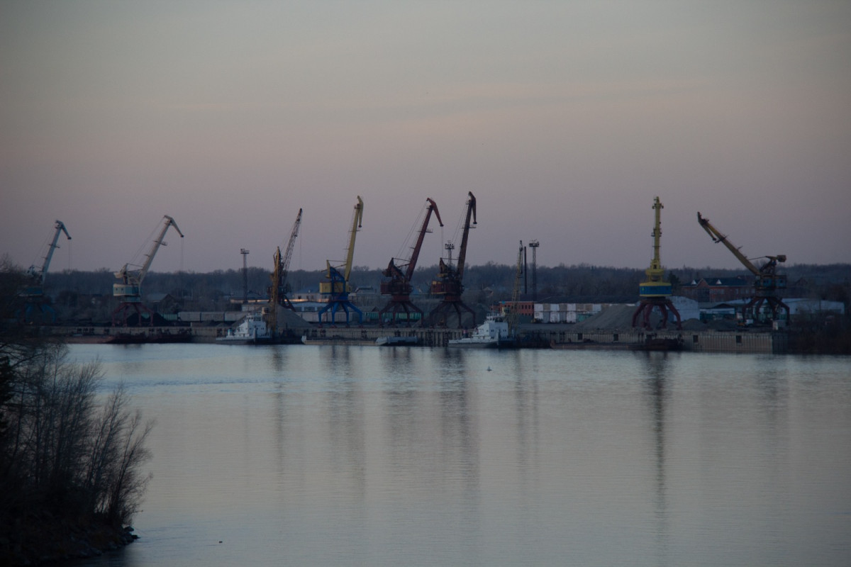 Всего в порту находятся 12 кранов, причём крановщики не закреплены за каким-то определённым. Работают на разных. Дело в том, что то, куда капитаны поставят баржу, напрямую зависит от того, какой кран свободен, и где есть место для разгрузки. Работа не останавливается даже ночью, погрузка и выгрузка идёт круглосуточно, пока на реке не встанет лёд.