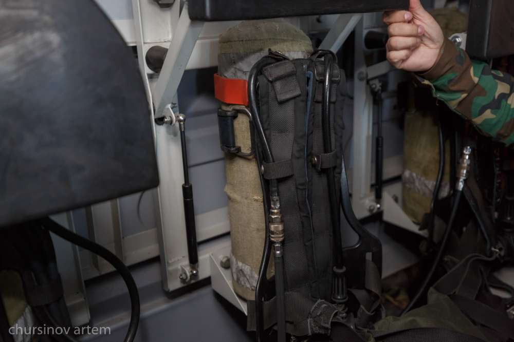 "Максимальное давление в баллоне, которое допускается к работе – 300 бар. Хватает на полчаса. При уровне от 50 до 60 бар срабатывает звуковой сигнал, и пожарный обязан покинуть место работы", – уточняет он.