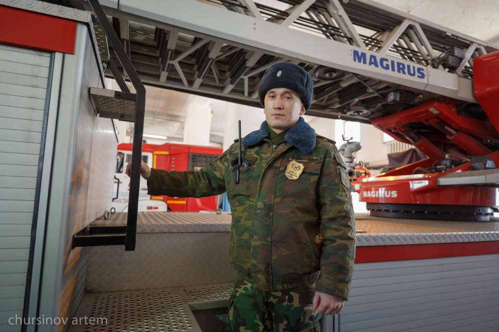 Например, командир отделения специализированной пожарной части № 5, старшина гражданской защиты Аятолла Галиев (на фото) трудится здесь с 2005 года, уже 16 лет.