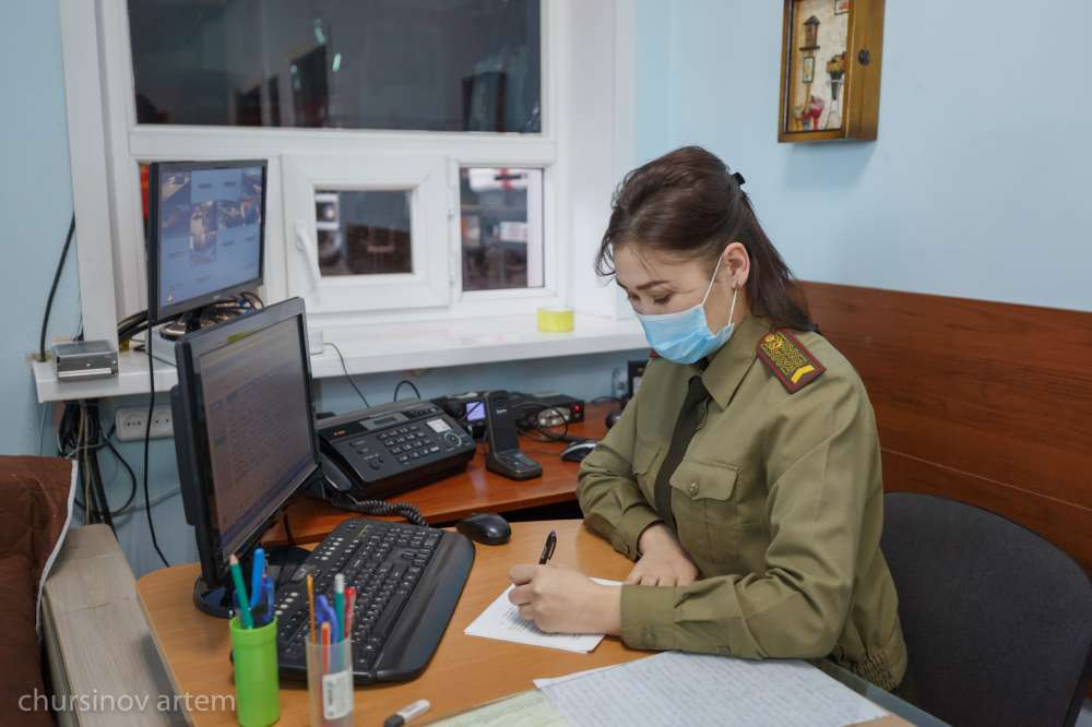 "Принимаем сообщения о пожаре, ЧС, направляем технику. При поступлении сообщения о пожаре мы, не прерывая разговор, включаем сигнал тревоги. Пока пожарные спускаются, заполняю путевку, вручаю каждому водителю техники, которая выезжает. Отправляю технику. Все это занимает примерно одну минуту", – говорит Асыл.