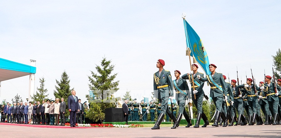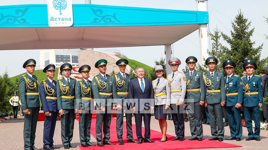 - Н.Назарбаев принял участие в церемонии поднятия Государственного флага и вручил погоны офицерам