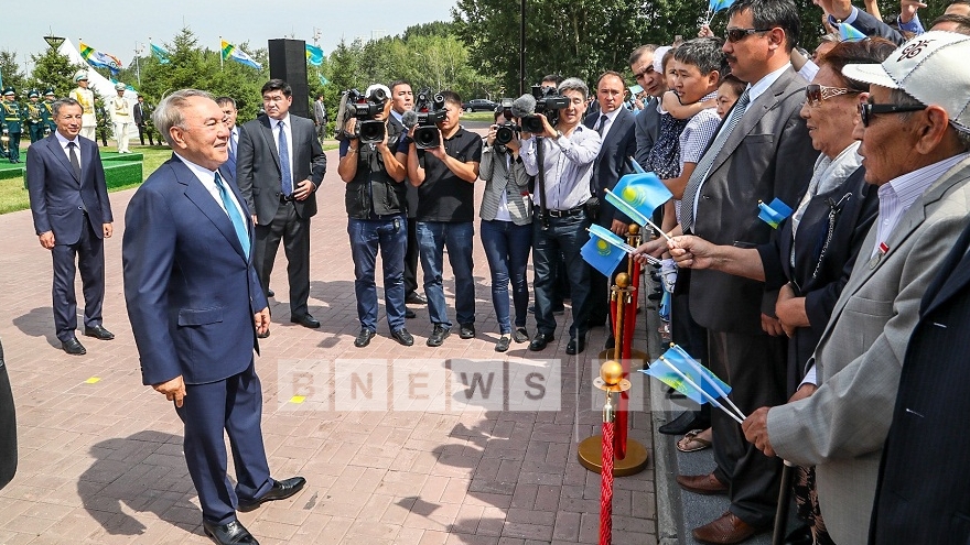 «Всегда флаг государства несется впереди народа, впереди наступающей армии, он устанавливается как победитель в побежденном государстве. Именно под флагом Советского Союза, где мы были, над рейхстагом реял флаг Советского Союза, так и наши предки под единым флагом побеждали и сохранили Великую степь. И мы продолжатели, под этим флагом 25 лет победно шествуем по нашей Великой степи. За это время мы смогли сделать Казахстан единой нацией, под единым флагом, потому что наш флаг имеет единый цельный цвет, а не полоски. Этому я придавал символ единства», - сказал Глава государства.