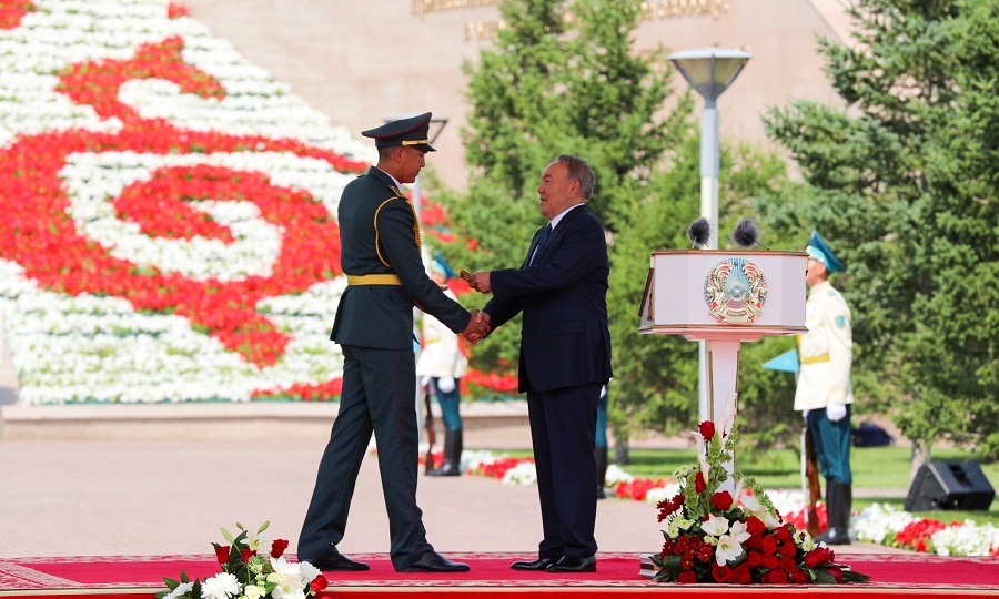 Н.Назарбаев принял участие в церемонии поднятия Государственного флага и вручил погоны офицерам