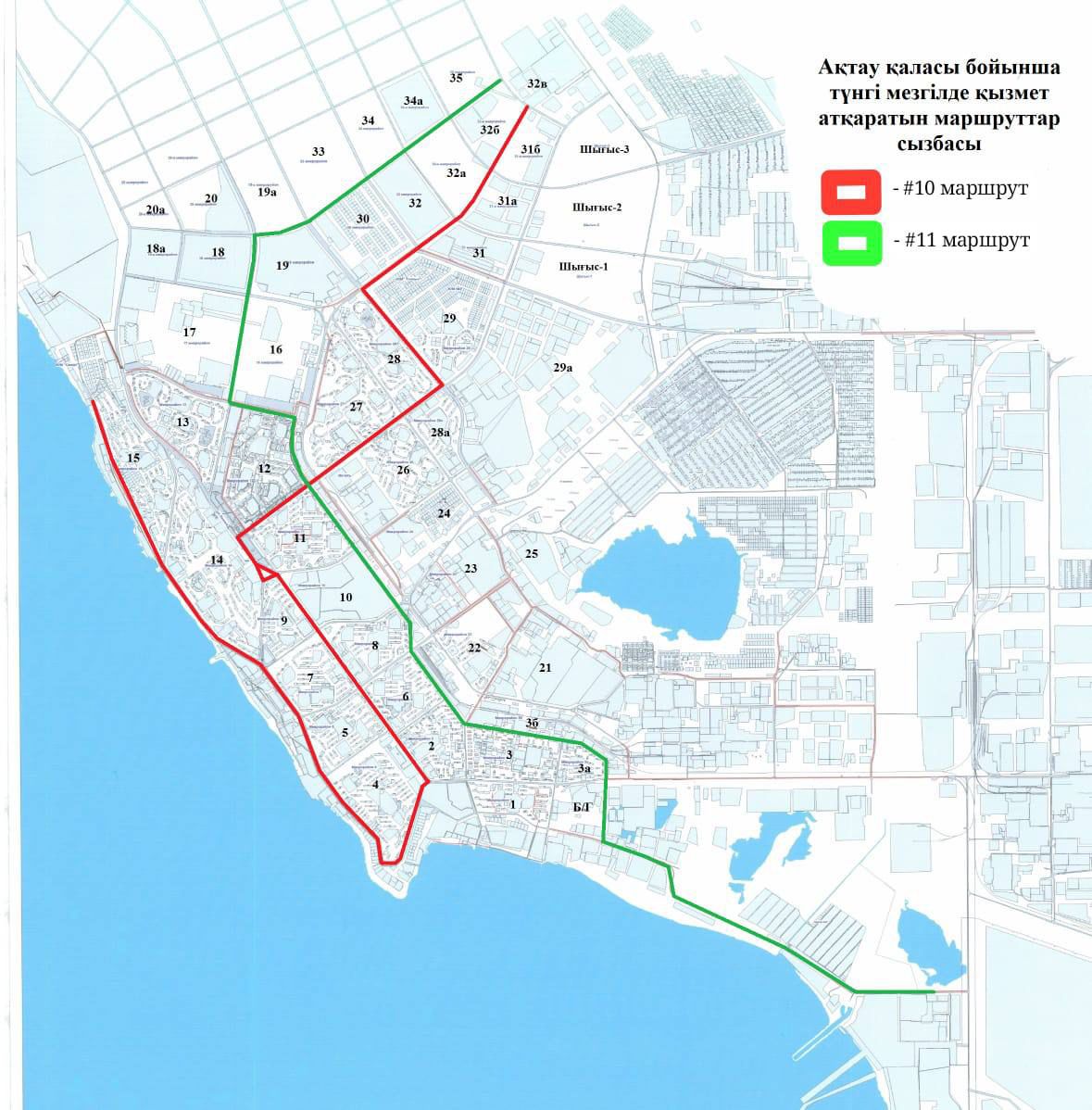 В Актау запущены маршруты №10 и №11, курсирующие в ночную смену, с 22:00 до 06:00 часов, в соответствии с установленным расписанием.