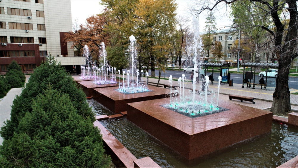 Завершено строительство фонтана между Национальной библиотекой и улицей Байсеитовой. Отремонтирован не работавший фонтан перед Государственным академическим русским драматическим театром имени Лермонтова.