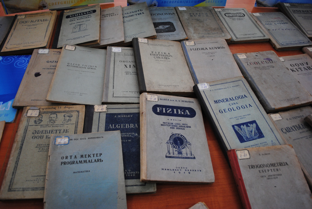 «Мы представили газеты, журналы и книги, написанные на латинице в 1930-1940-е годы. Здесь можно увидеть учебники и пособия по химии, физике, тригонометрии, алгебре, географии, горному делу, агрономии, животноводству. К примеру, «Сборник алгебраических задач» для 6-7 классов неполной средней школы 1939 года издания, «Органическая химия» 1940 года, «Астрономия» 1938 года. Особый интерес вызывает «Курс высшей математики» 1935 года издания Алихана Ермекова, который был одним из самых молодых представителей движения «Алаш», - пояснила методист отдела развития библиотеки им. Абая Ольга Мальцева.