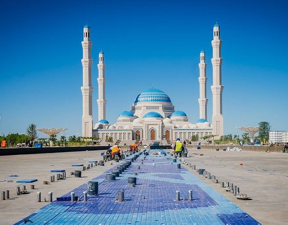 Аким напомнил, что строящаяся мечеть - самая большая в Центральной Азии. Высота её главного купола - почти 90 метров, минареты - 130 метров. Вместимость объекта - до 30 тысяч человек.
