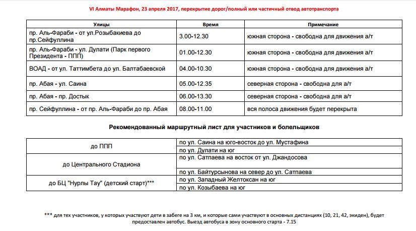 23 апреля с 7.00 до 14.00 часов по времени Астаны будет частично перекрыто движение для автовладельцев в местах прохождения дистанций марафона.