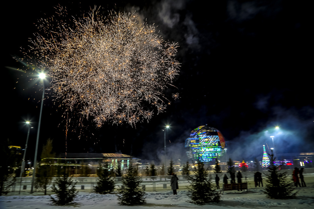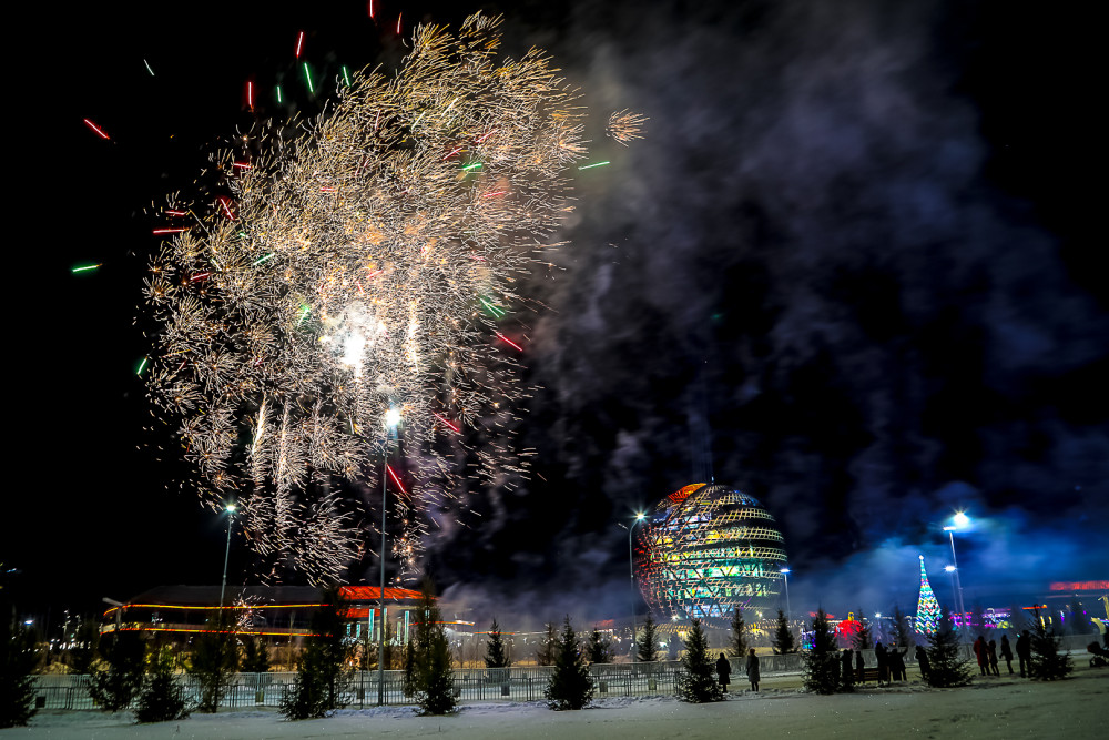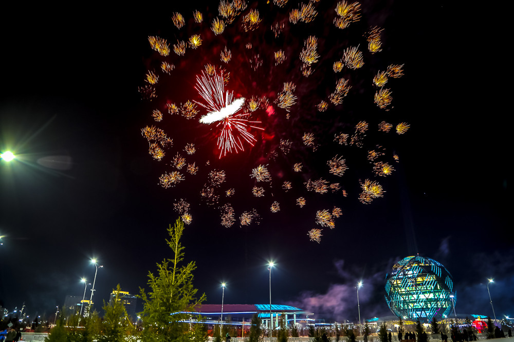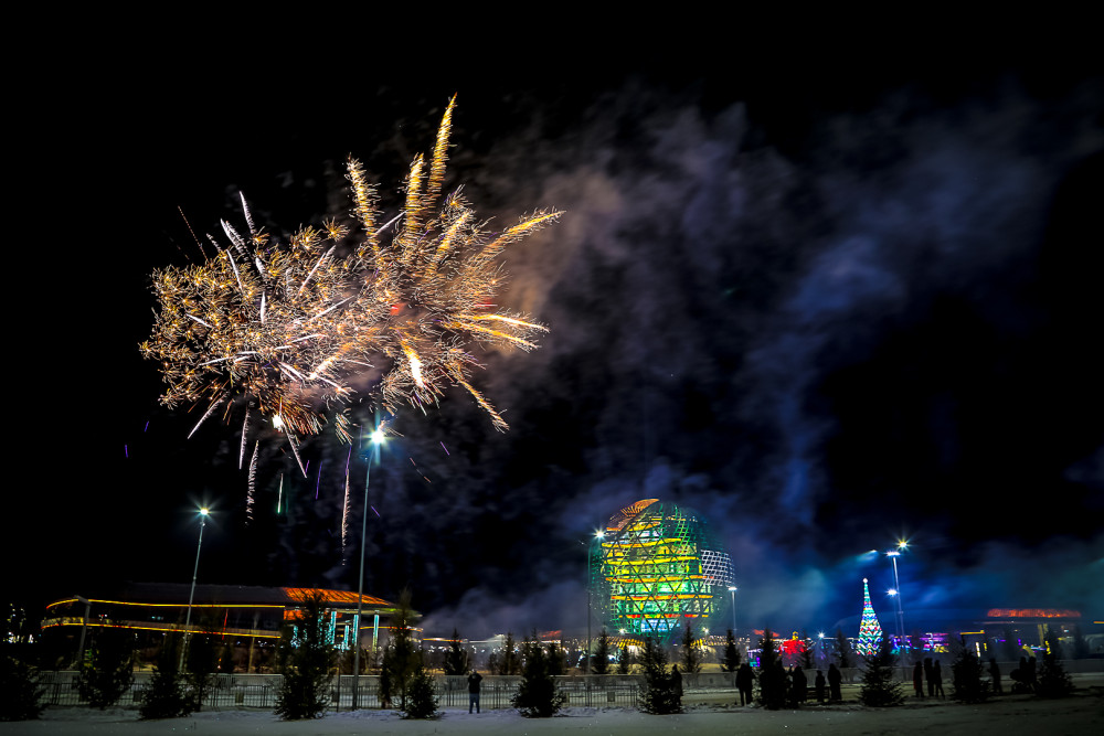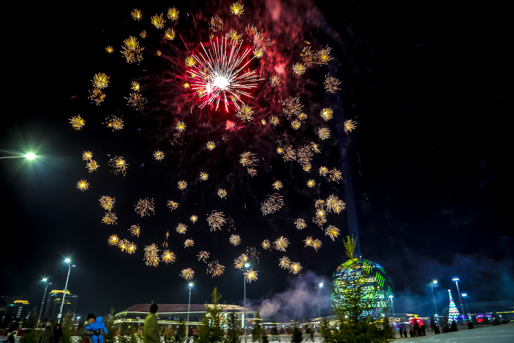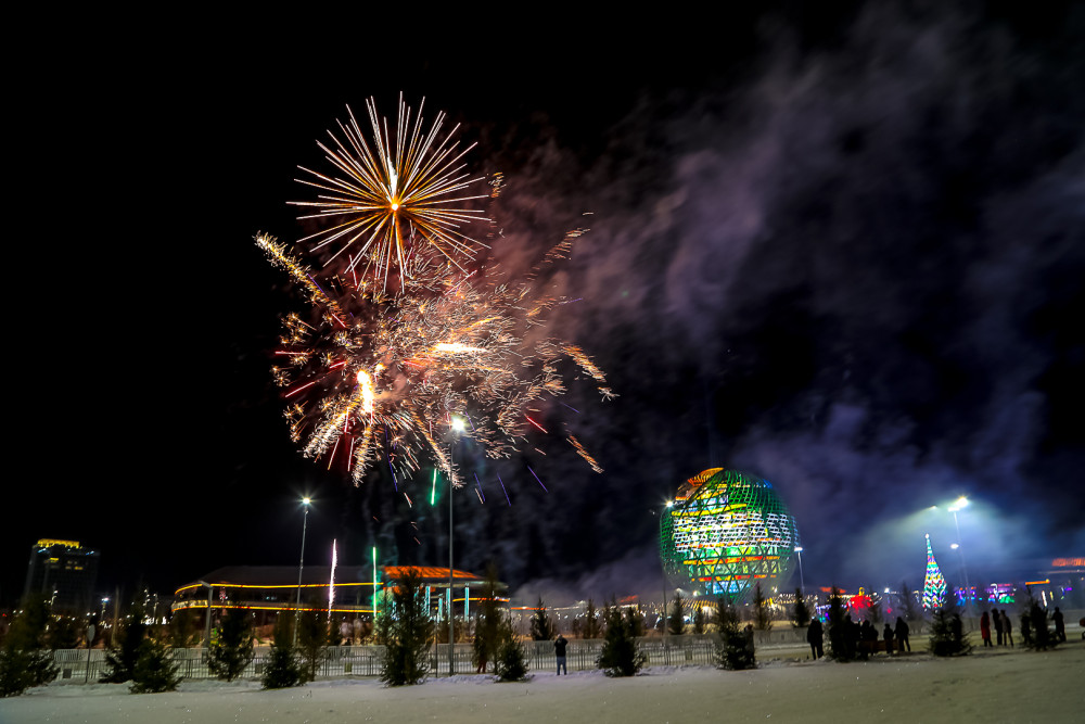В честь наступления 2018 года салют был запущен в трёх районах столицы: на территории выставки ЭКСПО, на набережной и на пересечении улиц Пушкина и Абылайхана, передает корреспондент BNews.kz.