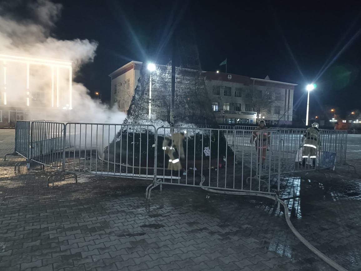 Пожарным в новогоднюю ночь пришлось тушить ёлку на центральной площади пригородного посёлка Тасбогет в Кызылорде, передаёт BaigeNews.kz со ссылкой на пресс-службу ДЧС области.