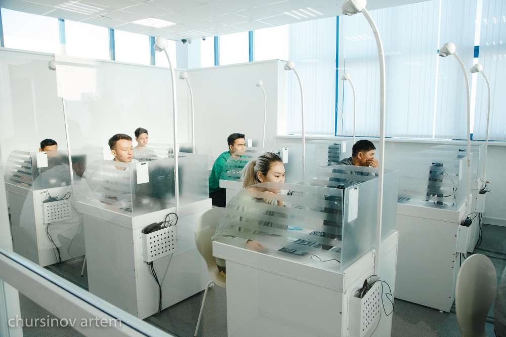 Здесь также обновили оборудование и над каждым компьютером установили видеокамеру. Это позволяет наблюдать за движением экзаменуемого. В случае нарушения правил сдачи экзамена баллы автоматически аннулируются.