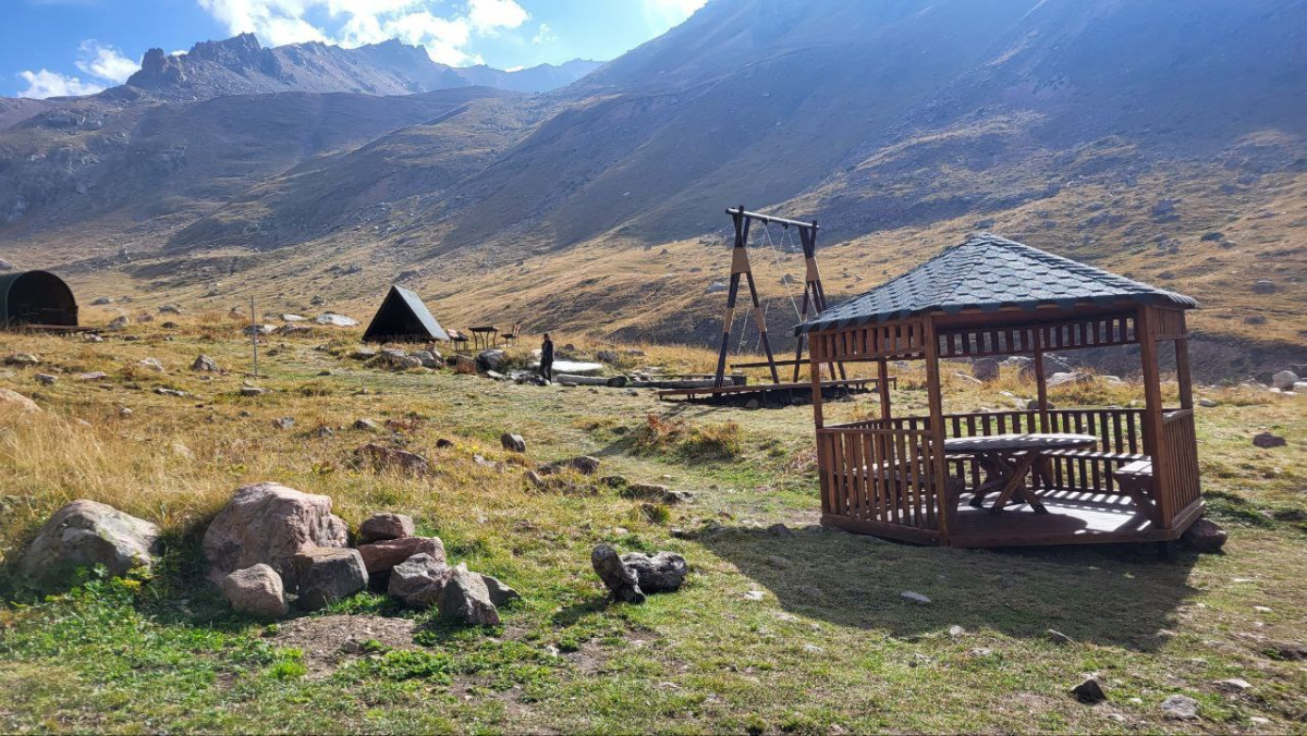 "Мыңжылқы" - оборудованный летний лагерь для любителей горного отдыха, трекинга, хайкинга и прогулок с палаткой. Для комфортного и безопасного отдыха туристов отведены палаточные места, установлены уютные беседки, столы со скамейками и качели "Алтыбакан".