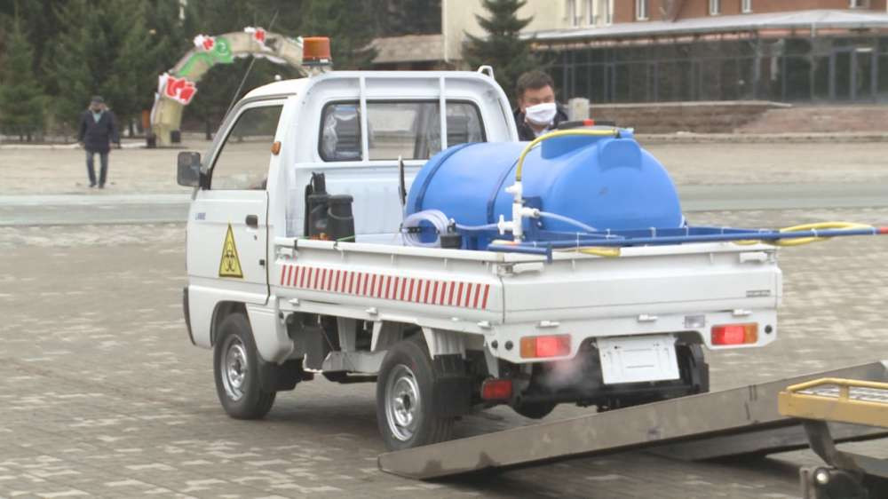 В целом дезинфекция улиц в областном центре началась 25 марта, в ней участвует техника коммунального предприятия "Тазалык".