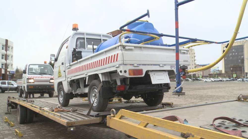 Первая партия машин для дезинфекции улиц и дворов прибыла в Кокшетау. Спецтранспорт в количестве 10 единиц заказан из средств бюджета Акмолинской области, сообщает корреспондент