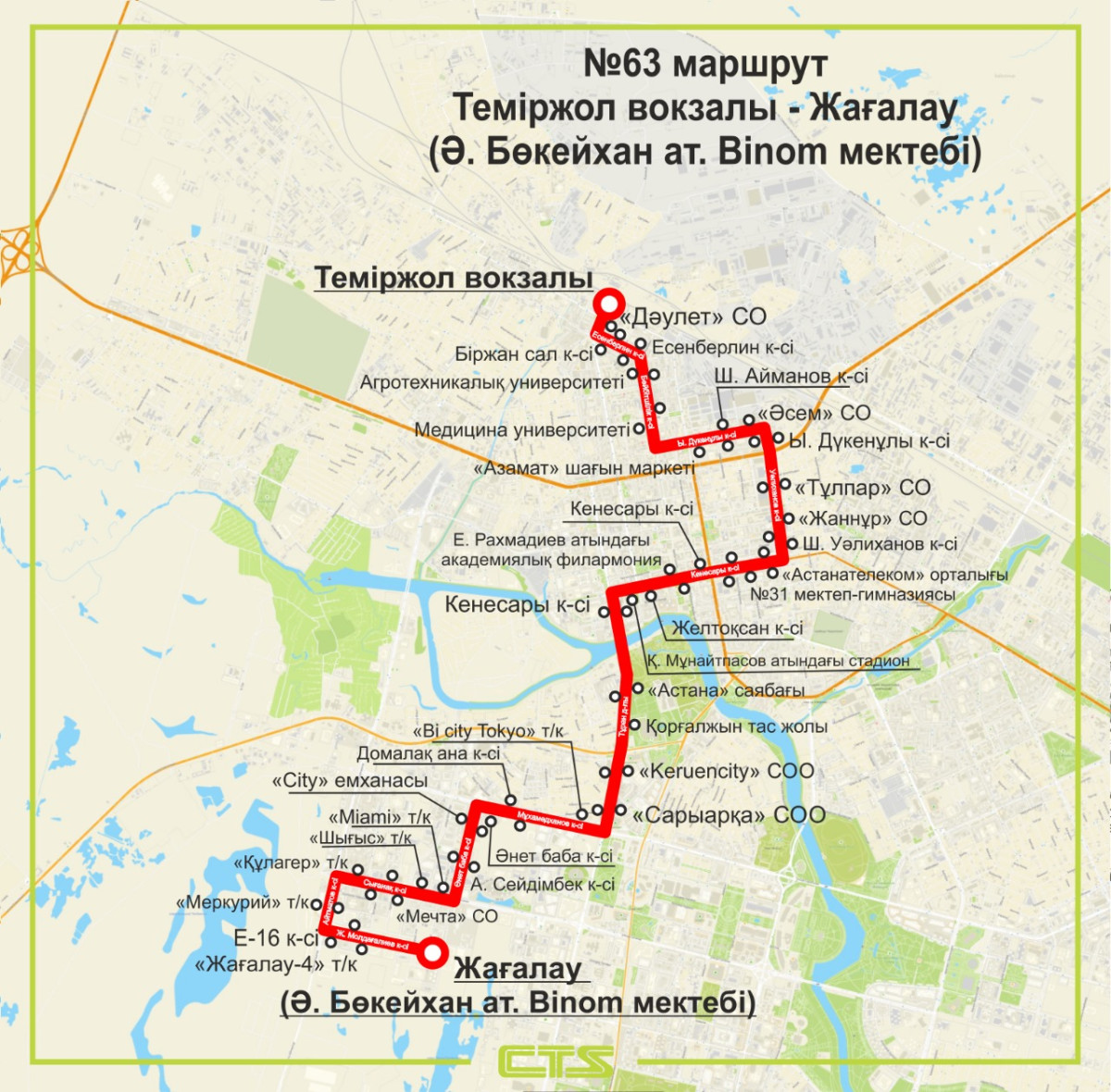 20 июля в Астане на линию выйдет новый маршрут №63. Он свяжет железнодорожный вокзал и микрорайон Жагалау, передаёт BaigeNews.kz.
