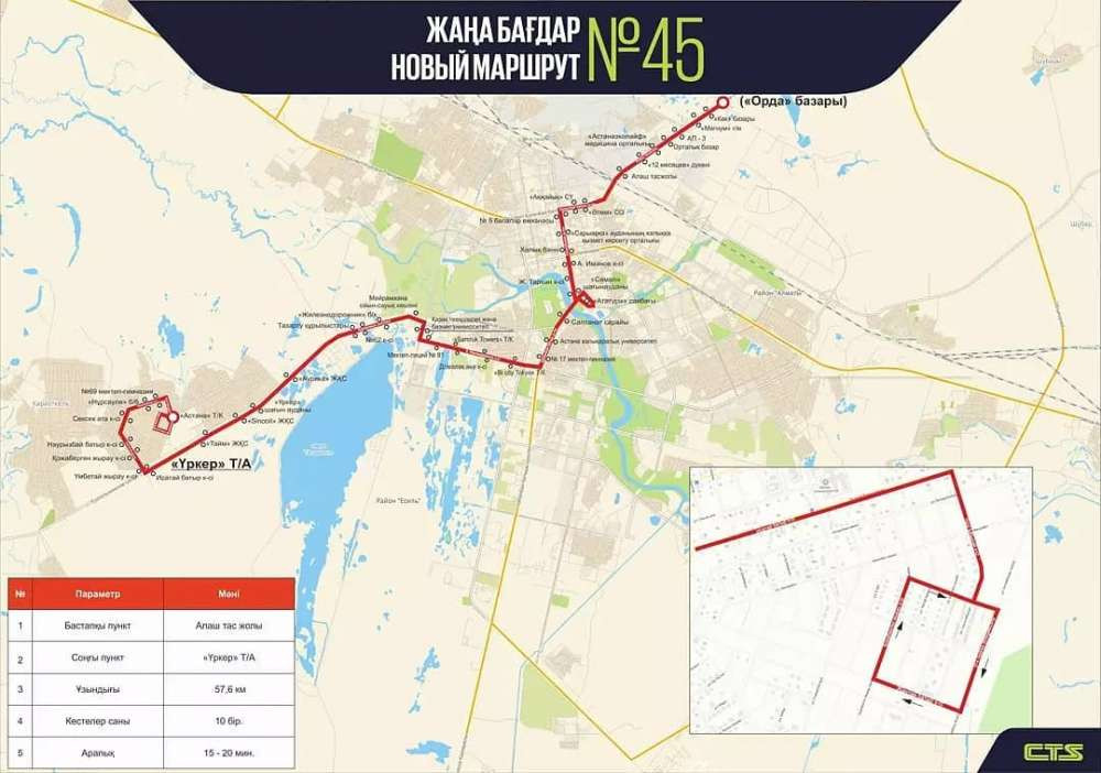 С 19 августа в Нур-Султане начнет курсировать новый городской маршрут - № 45, передает BaigeNews.kz со ссылкой на пресс-службу CTS.