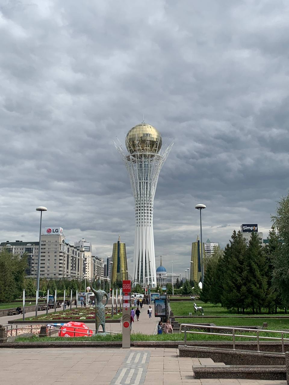 Главной достопримечательностью столицы является башня Байтерек. На фотографиях в Интернете она казалась поразительно большой, но когда я увидела её вживую, была немного разочарована, однако все равно осталась под приятным впечатлением от стометровой белой башни с огромным золотым шаром на вершине, в который, к сожалению, я так и не попала из-за очереди.