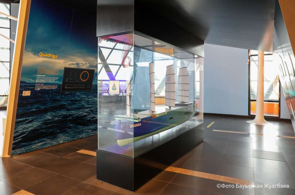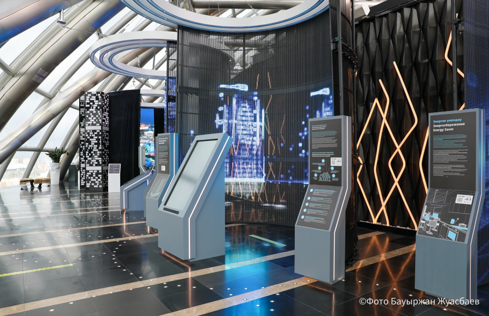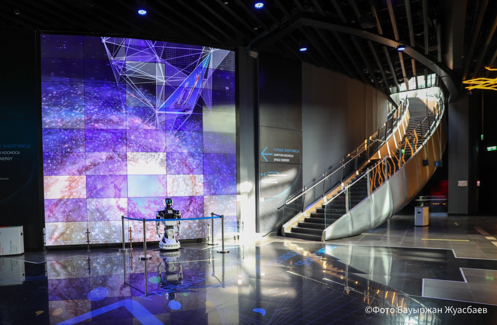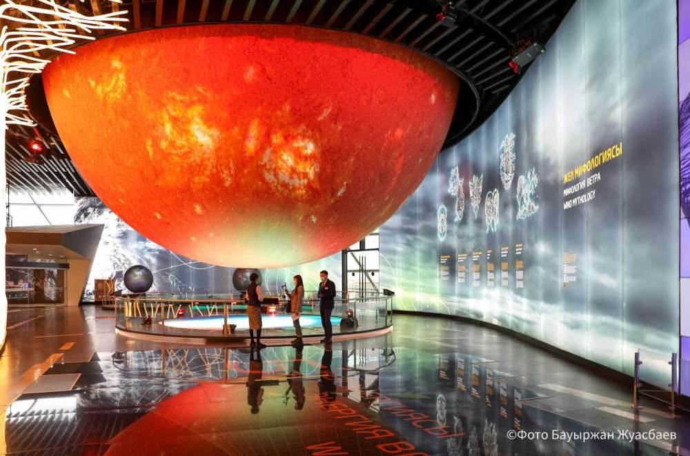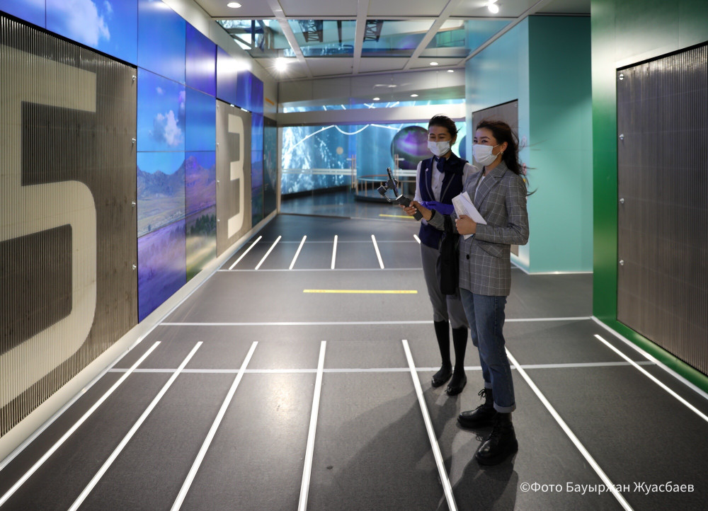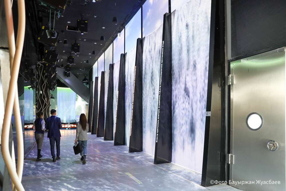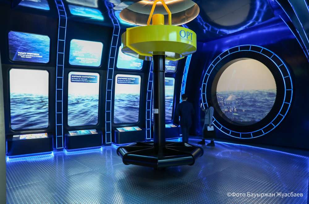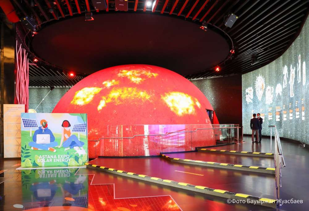 Экскурсия по музею начинается с восьмого этажа — "Будущая Астана". Здесь можно познакомиться с проектами по внедрению альтернативных источников энергии. Например, в сфере установлены интегрированные солнечные панели. Они преобразовывают солнечную энергию в электроэнергию. Таким образом, обеспечивают энергопотребление павильона до 20 процентов.