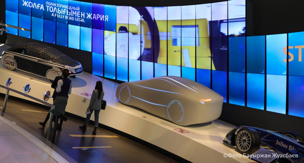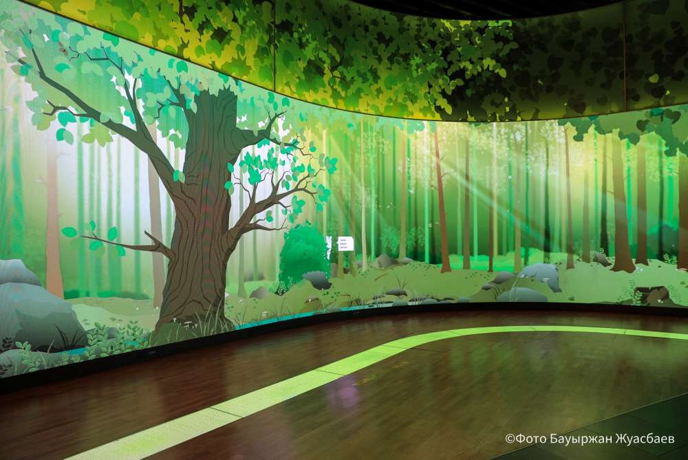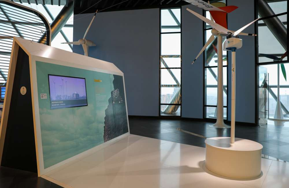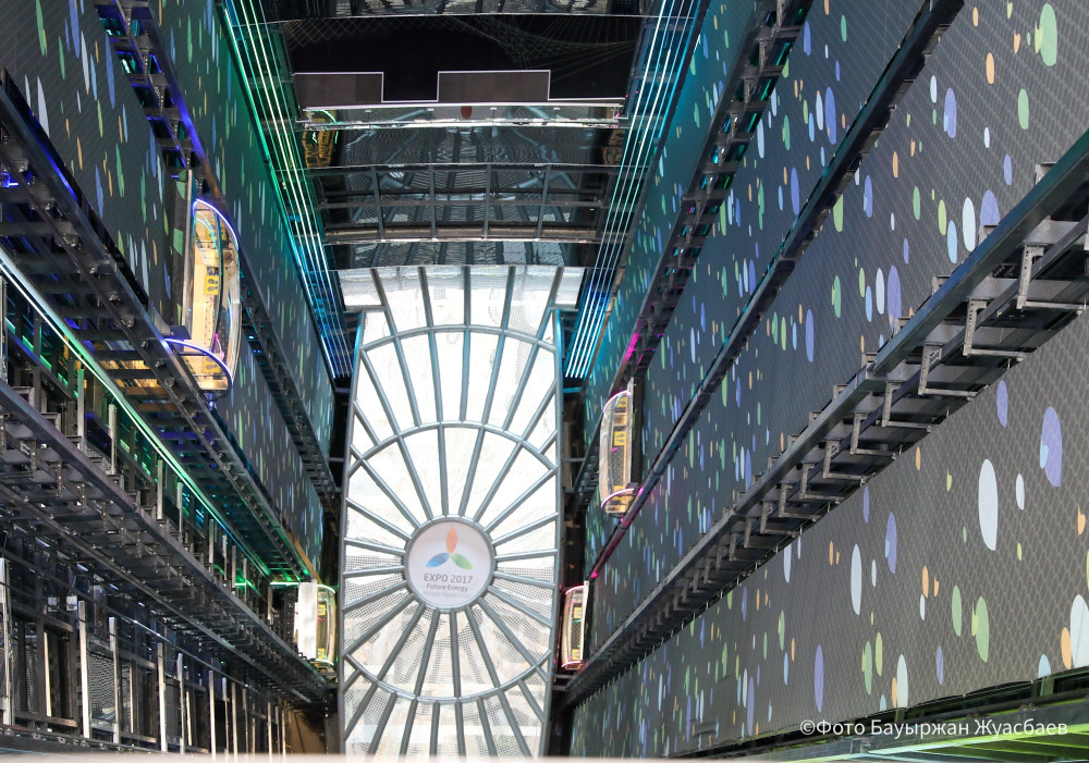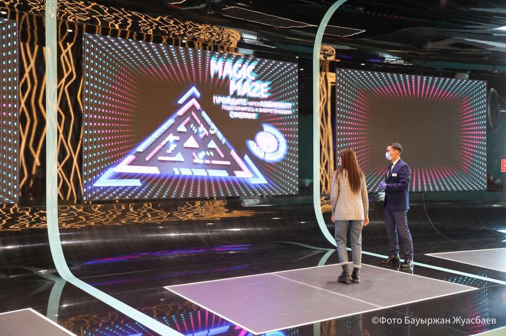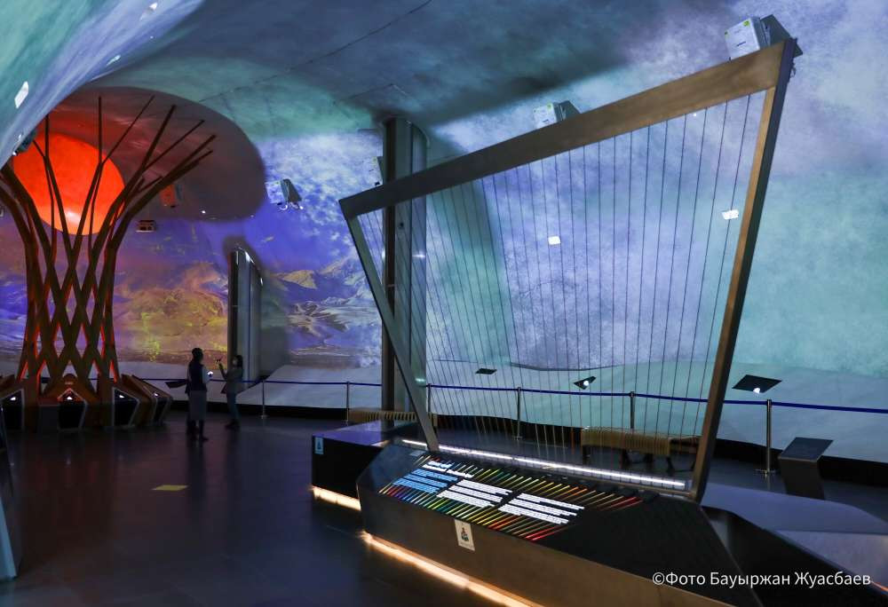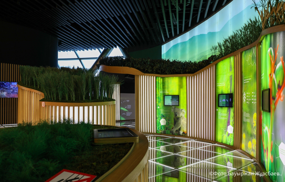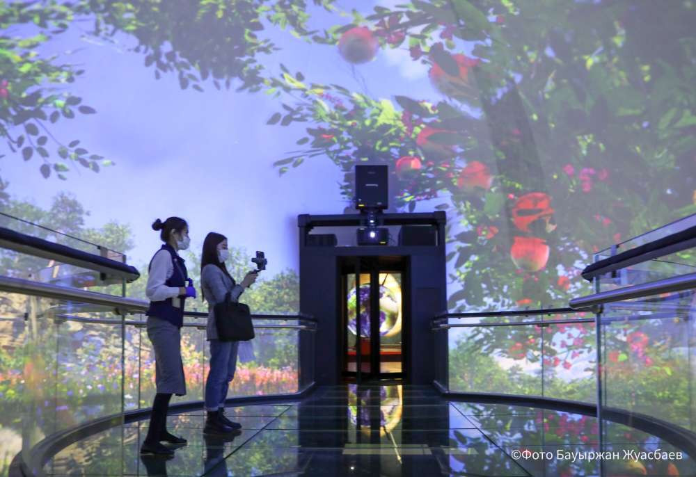 Экскурсия по музею начинается с восьмого этажа — "Будущая Астана". Здесь можно познакомиться с проектами по внедрению альтернативных источников энергии. Например, в сфере установлены интегрированные солнечные панели. Они преобразовывают солнечную энергию в электроэнергию. Таким образом, обеспечивают энергопотребление павильона до 20 процентов.