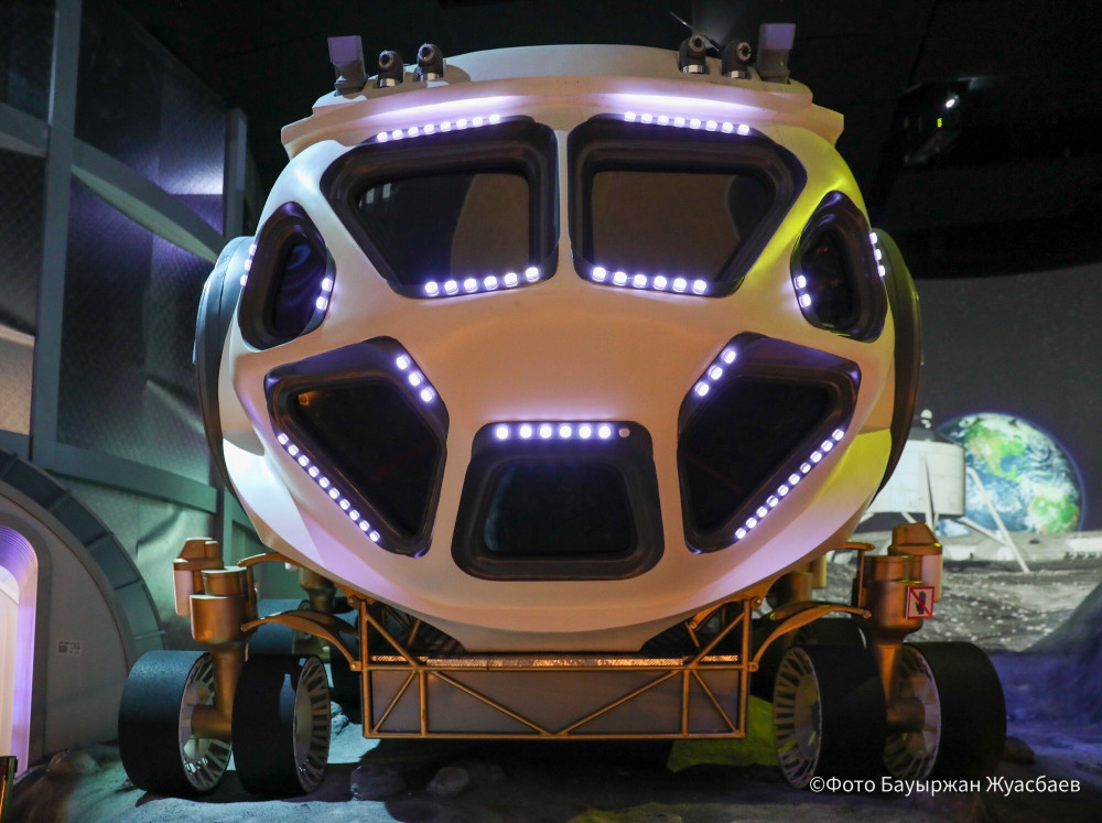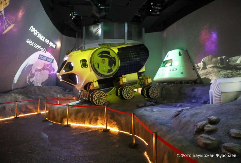 После можно прогуляться по Луне. Здесь установлен макет первого лунного самоходного аппарата "Луноход-1", а также макеты лунных лабораторий будущего, солнечных станций на Луне.