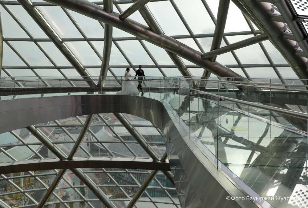 Также здесь установлен стеклянный мост, полюбившийся жителям и гостям столицы. Он расположен на высоте 95 метров и выдерживает нагрузку до семи тонн. По словам экскурсовода Ерасыла Битманова, на мосту молодожены часто устраивают свадебные фотосессии, а некоторые посетители делают своим избранницам предложение руки и сердца.