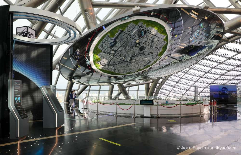 Восьмой этаж позволяет насладиться шикарным панорамным видом Нур-Султана. Также для посетителей представлен экспонат "Казахстан 2050". Это 3D инсталляция развития столицы по пяти направлениям: "Зеленые зоны", "Мобильность", "Архитектура", "Умный город" и "Астанатопия".