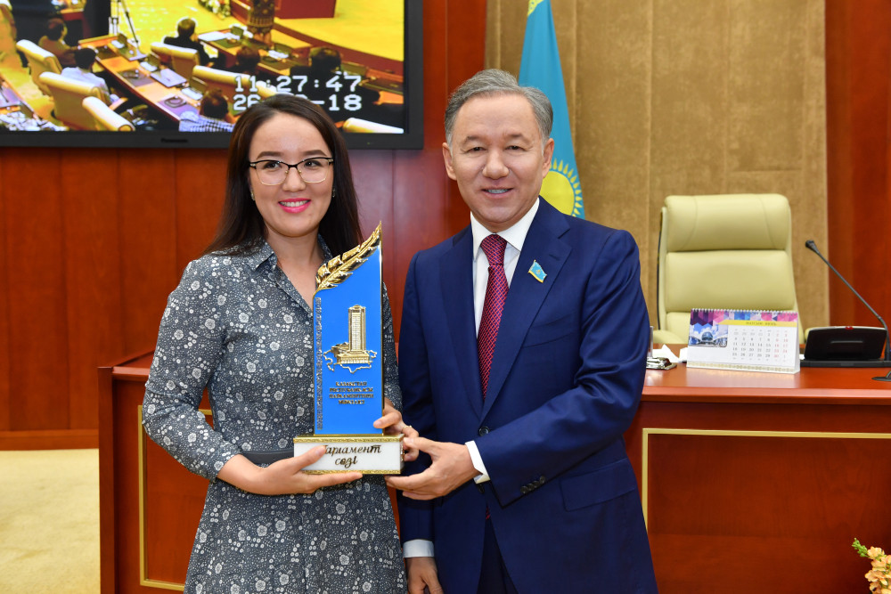 Премию "Парламент сөзі" в номинации "Специальный репортаж" получили Ирина Севостьянова и корреспондент телеканала "КТК" Оразханова Жаудир.