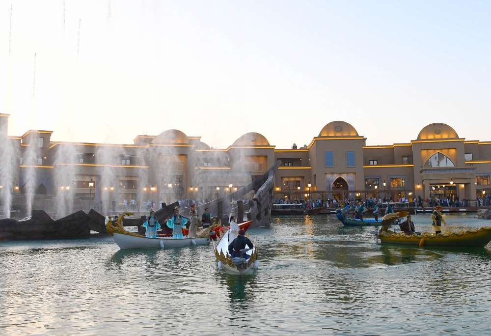 Комплекс "Караван-Сарай" включает в себя улицу торговцев и ремесленников времен Шелкового пути, "Летающий театр", амфитеатр для проведения конного шоу, восточный базар, торговые ряды и бутики, отели и рестораны, СПА и фитнес-центр, кинотеатр, семейно-развлекательный центр. При этом все сооружения связаны водным каналом.