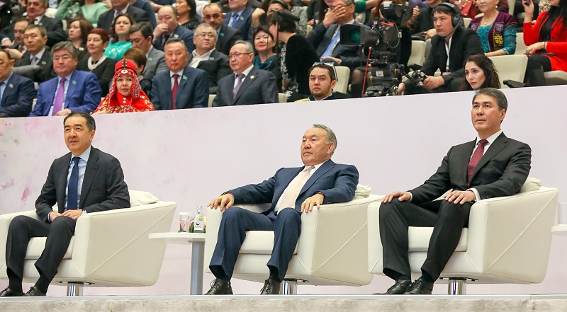 Нурсултан Назарбаев поздравил казахстанцев с праздником Наурыз мейрамы в ходе посещения мюзикла в Астане, передаёт корреспондент Bnews.kz.