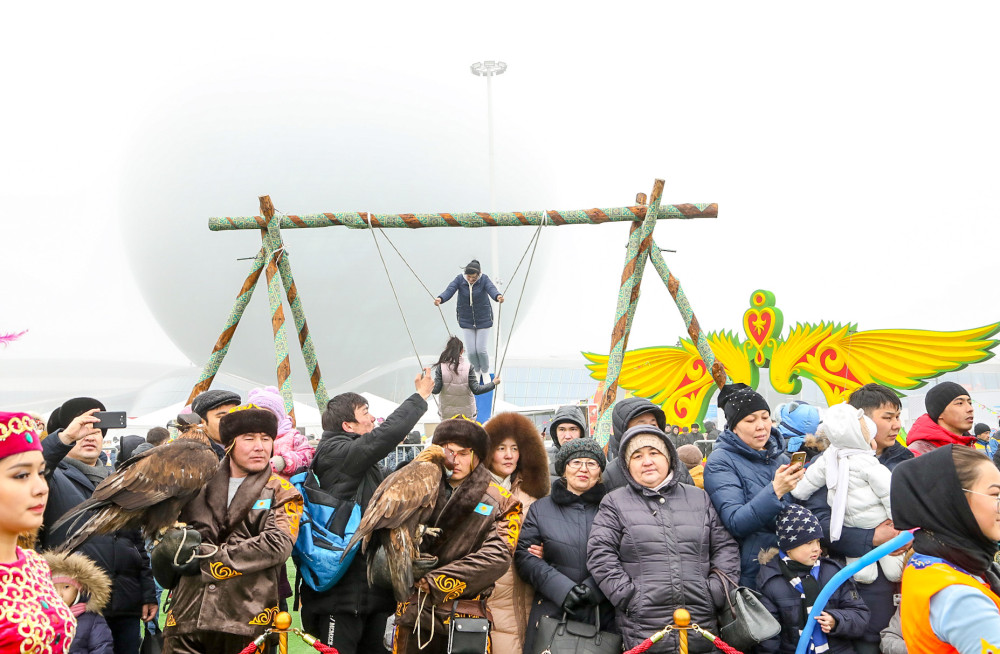 Глава государства также принял участие в праздничных народных гуляниях, развернувшихся на территории ЭКСПО. Президент Казахстана надел чапан и головной убор, украшенные национальными орнаментами. В организованном мини-ауле Нурсултана Назарбаева окружили дети. Елбасы пожелал каждому из них благополучия, счастья и единства.
