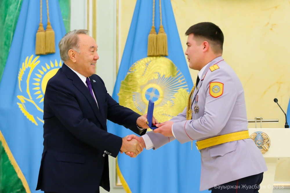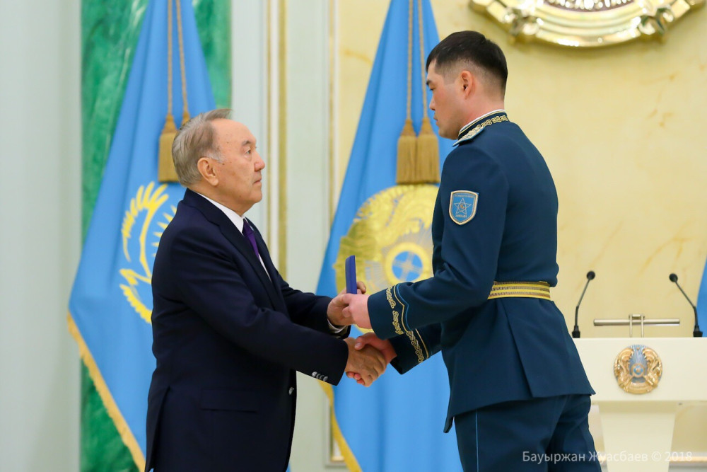 Медалью "Жауынгерлік ерлігі үшін" удостоен командир отделения воинской части 0112 президентского полка "Айбын" Службы государственной охраны Адильхан Торебеков.