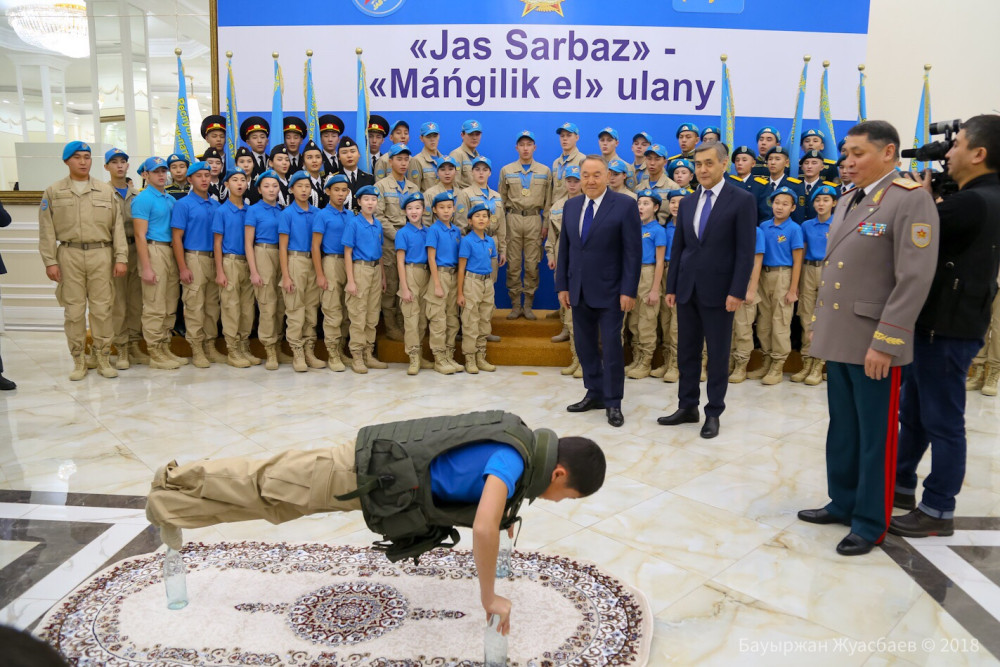 Верховный Главнокомандующий Вооружёнными силами РК Нурсултан Назарбаев встретился с воспитанниками Республиканского общественного объединения "Детско-юношеское военно-патриотическое движение "Жас сарбаз" и военно-патриотических клубов.