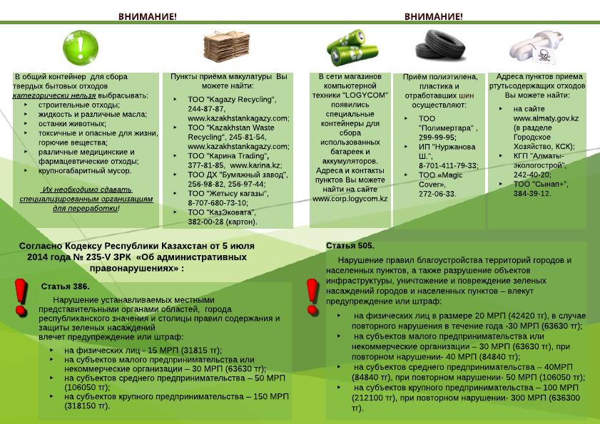Данные опроса в Казахстане показали необходимость в повышении грамотности людей и приобщению их к экологичности. ОФ «ОФАГА» разработал информационный буклет на поднятие информационной грамотности.