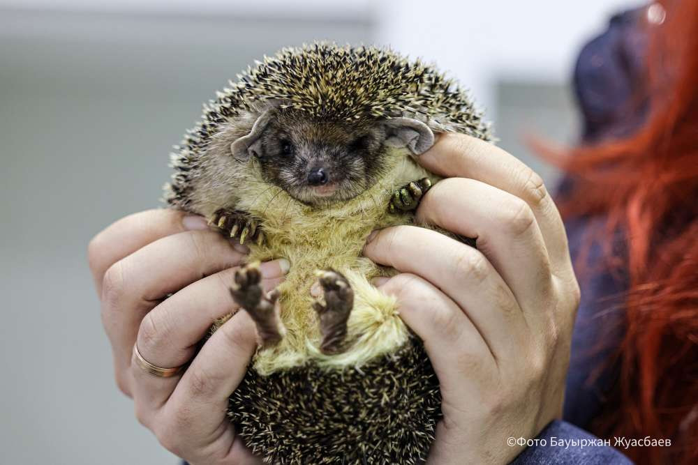 А это ежик Гена. Он тут новенький, чуть больше месяца, как прописался в приюте.