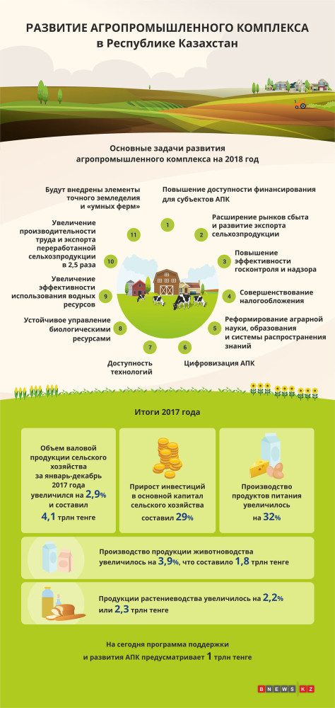 "Объем валовой продукции сельского хозяйства находится на контроле главы государства и правительства. Хотя мы достигли в прошлом году 2,9 %, в некоторых областях показатель у нас значительно ниже. Например, в Южно-Казахстанской области 2%, в Северо-Казахстанской, что интересно, в нашей основной житнице, не достигает среднереспубликанского уровня. В Акмолинской, Костанайской, Павлодарской, я бы заместителям акимов просил бы взять на контроль. Мы будем ежемесячно заслушивать акимов", - поручил министр сельского хозяйства.