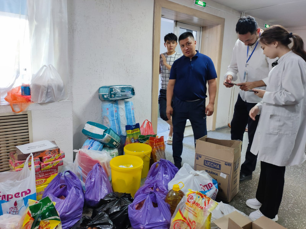 "Мы стараемся записывать всех, кто привозит нам гуманитарку. Но иногда люди просто оставляют продукты и не называют своих имён. Благодаря доброте наших земляков, эвакуированные обеспечены всем, что нужно. Спонсорская помощь идёт большая", - пояснил Олжас Муртабекулы, принимая очередную партию груза от городского центра крови.