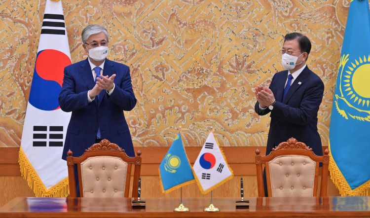 Приветствуя Касым-Жомарта Токаева, Президент Южной Кореи отметил, что с начала пандемии встреча с Президентом Казахстана стала для него первой на высшем уровне.