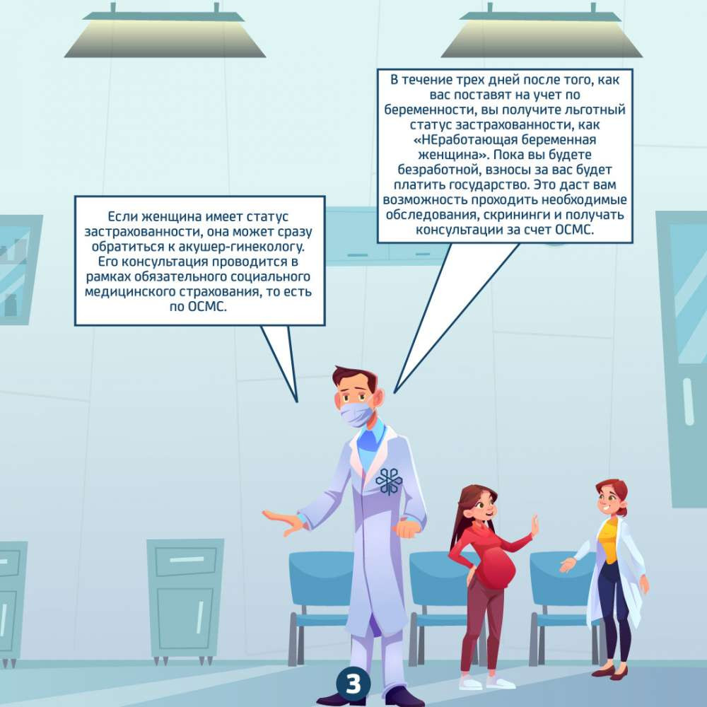 "Однако, если женщина не застрахована, её может принять врач общей практики или акушерка и поставить на учёт по беременности. Приём этого врача входит в ГОБМП. В течение трёх дней женщина получит статус застрахованной в качестве льготной категории. После этого она сможет получить направления на все обследования, которые входят в перечень ОСМС", – объяснила эксперт.