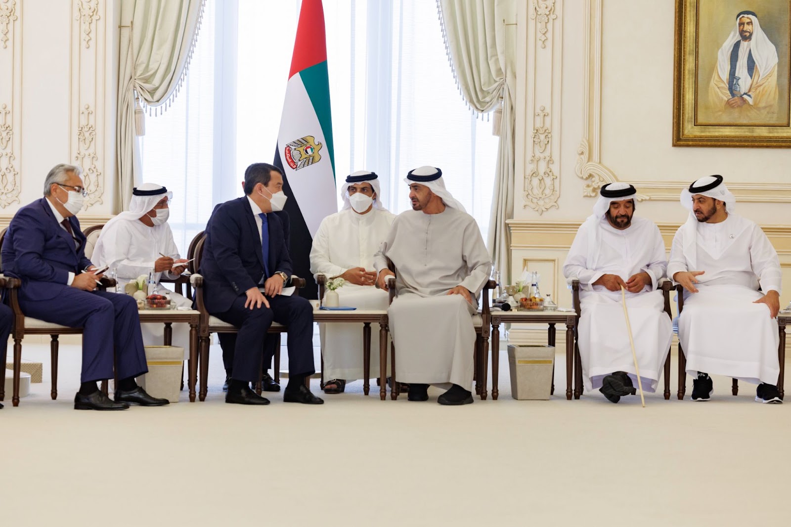 В рамках официального визита в Объединенные Арабские Эмираты во Дворце "Аль-Бахр" состоялась встреча премьер-министра Казахстана Алихана Смаилова и президента ОАЭ шейха Мухаммеда бен Заида Аль Нахаяна, передаёт BaigeNews.kz со ссылкой на сайт премьер-министра.