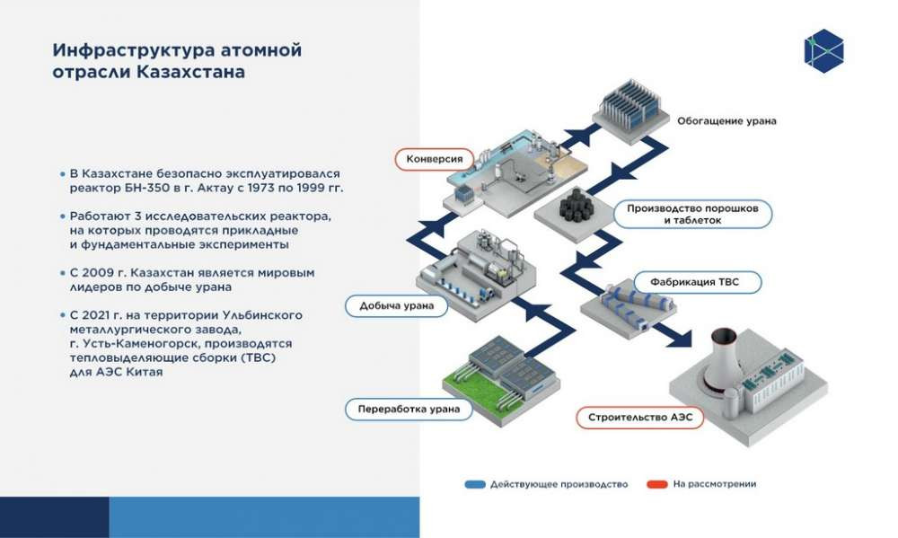 Ранее о развитии энергетики в Казахстане рассказали специалисты и представители профильных министерств, в числе прочего поведав о планах по строительству АЭС. Также своим видением безопасности атомных реакторов поделился генеральный директор "Национального ядерного центра РК" Эрлан Батырбеков. Не так давно, 14 февраля 2022 года, в AUES University были даны ответы на вопросы о том, есть ли в Казахстане под атомную станцию готовые топливные сборки и почему мы должны добиваться полного, как можно большего включения в имеющийся атомный цикл. В свою очередь, вице-министр энергетики Жандос Нурмаганбетов сообщил о том, что вопрос по строительству в Казахстане атомной электростанции решится в 2022 году. А ещё ранее генеральный директор ТОО "Казахстанские атомные электростанции" Тимур Жантикин поделился своим видением развития отечественной атомной энергетики и строительстве АЭС в Казахстане, отметив, что "это не прихоть, а насущная необходимость".