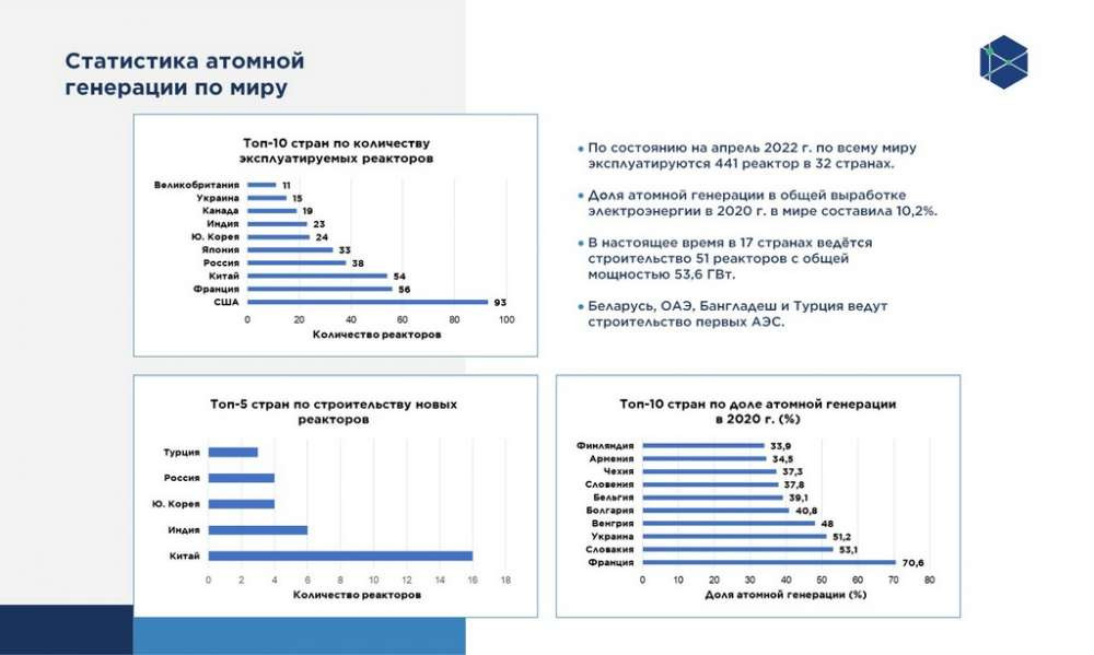 Больше всех АЭС в мире на данный момент эксплуатирует французская компания EDF и российский "Росатом", две китайские — CNNC и CGN, и корейская — KHNP. Также есть еще японцы, но после аварии на Фукусиме в 2011 году они приостановили экспорт собственных технологий и сейчас строят в альянсе с кем-то, и американцы, которые строили свои реакторы, но, к примеру, из-за финансовых проблем в 2017 году их компания Westinghouse подала на банкротство. Возможно, в ближайшем будущем мы вновь увидим их реакторы на рынке, но у них были определенные трудности.