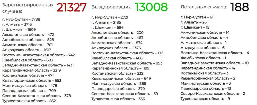Последние данные по ситуации с КВИ в Казахстане следующие: