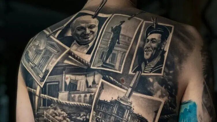 Тату Ерошевского победило в категории "черно-белая татуировка". Кроме Утесова и Жванецкого на его спине изображены ретро-машина "Чайка", одесский дворик и фото одесских достопримечательностей.