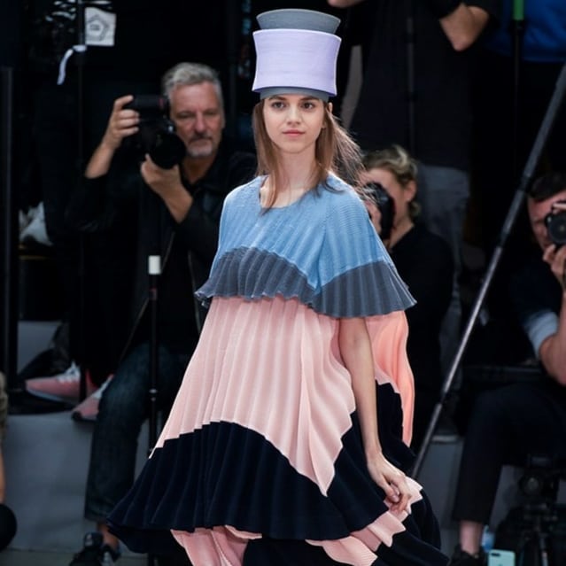 Само дефиле тоже выглядело весьма оригинально – модели подпрыгивали под динамичную музыку, благодаря чему их плиссированные платья обретали причудливые изломы.