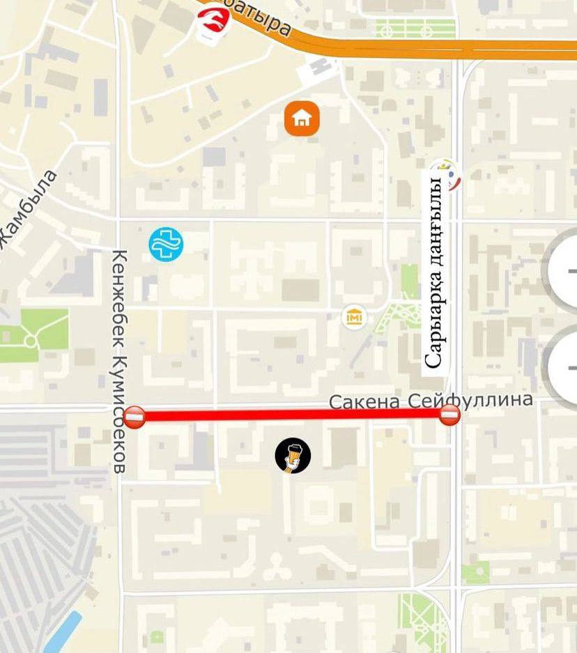 "С 28 по 29 сентября будет полностью перекрыт проезд на участке от проспекта Сарыарка до улицы Кумисбекова", - сказано в сообщении.