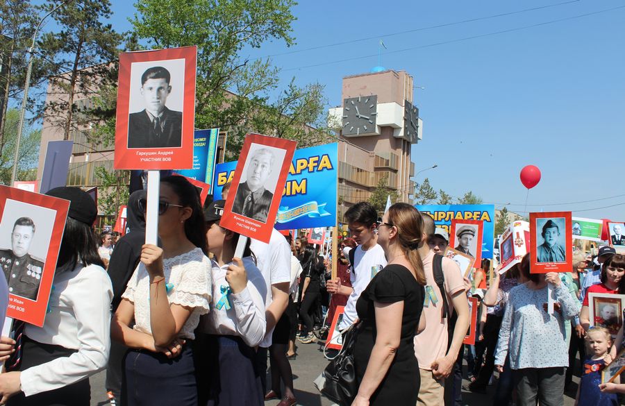 В этом году в акции приняли участие около пяти тысяч человек, среди которых более 800 детей разных возрастов. Павлодарцы с портретами своих воевавших родных и близких прошли по центральной улице города Сатпаева. Участники акции скандировали имена фронтовиков и поздравления с Днем Победы.