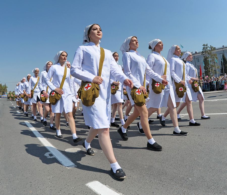 "Со мной приехал мой сынок, он еще с зимы начал готовиться к параду, потому что гордится дедом. Папа – Айтакан Мукаш-улы участвовал в войне с 1941 по 1943 годы, демобилизовался из-за ранения, на войне потерял четыре пальца. Ему тогда было всего 20 лет. Моей маме Майкыш Омыржанкызы в 1941 году исполнилось 11 лет. Она с детства трудилась в тылу. Отец и мама воспитали 11 детей, из них семеро живы, сегодня мы пришли на этот парад поздравить всех с праздником и отдать дань нашим героическим родителям", — рассказала Фарида Мукашева.